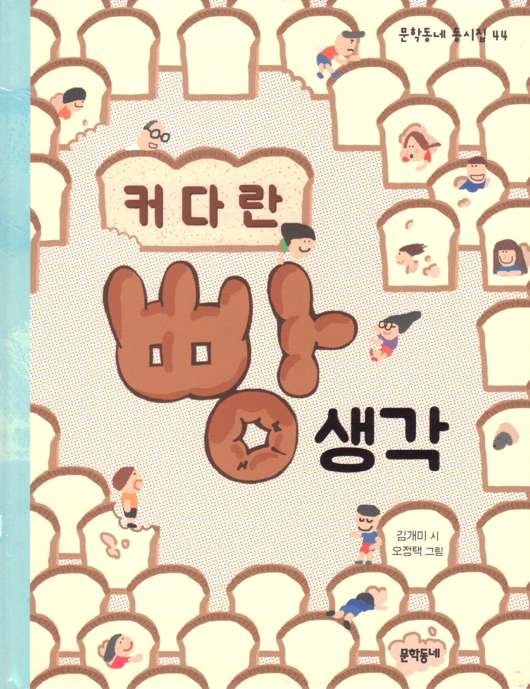 자신이 정말 개미일지 모르고, 지금의 삶이 “이끼 그늘에서 잠시” 쉬며 “사람이 된 꿈을 꾸고 있는” 건지도 모른다고 자백하는 시인. 김개미 시인의 두 번째 동시집으로 아이들이 서 있는 자리로 내려가 딱 아이들 마음 높이에서 아이들과 소통하며 얻은 언어로 쓰여진 작품이라는 평이다. 표제작 「커다란 빵 생각」은 제목 그대로, 트럭만큼 커다란 빵을 구워 그 안에 온몸을 던져 넣고 싶은 화자의 마음을 생생한 감각적 표현을 통해 그려내고 있다. 기발한 상상력으로 아이들이 소망하는 세계를 독창적인 발상으로 그려냈다는 평가를 받으며 2014년 수혜작으로 선정되었다.