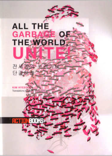 언어적 실험, 격렬한 이미지를 통해 독특한 상상력의 세계를 드러내는 김혜순 시인의 작품이 『All the Garbage of the World, Unite!』로 번역되어 출간되었다. 이 번역서에는 작가의 2008년 작 『당신의 첫』시집의 시들과 대표작 「맨홀 인류」등이 포함되어 있다. 미국 Action Books 출판사는 김혜순 작가와 시들을 언론사와 인터넷 블로그에 적극적으로 홍보하고 있어 앞으로의 미국에서 좋은 호응을 기대해본다.