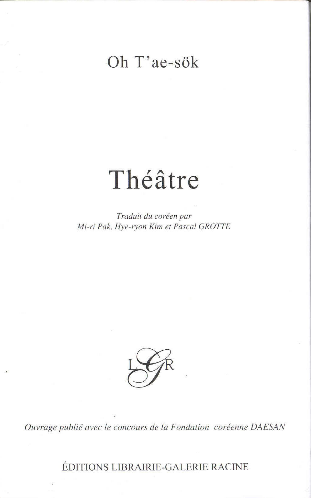 희곡 | 오태석 희곡집(前 한국문학 번역지원사업 지원) Théâtre