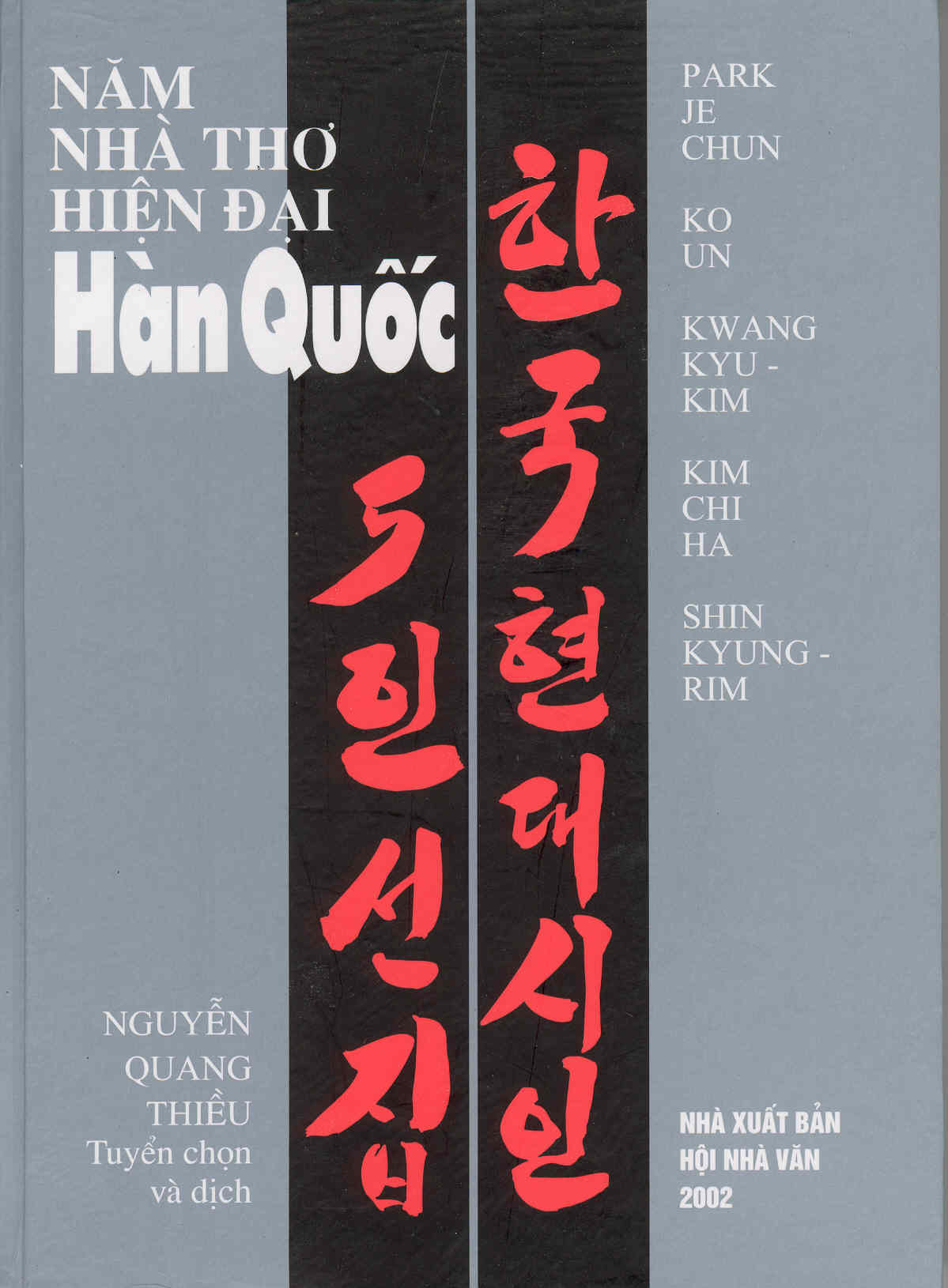 현대 한국을 대표하는 시인 박제천, 고은, 김광규, 김지하, 신경림 등 5인의 작품 3백22편을 번역한 시집이 베트남에서 출판됐다. 번역된 시들은 시인별로 구분되어 각 시인의 사진과 약력 뒤에 실려 있으며 한 작가당 많게는 1백편에 이르는 작품이 소개되어 있어 한국현대시를 포괄적으로 이해하는 데 도움을 주고 있다. 시인으로서 베트남작가동맹 회원인 역자는 이번 작업이 참으로 흥미있고 의미있는 일이었으며 한국의 시는 자신이 접해본 외국시 중 가장 아름다운 것이었다고 밝혔다. 이 책을 출판한 베트남작가동맹출판사는 베트남 최고의 출판사이다. 2001년 지원.