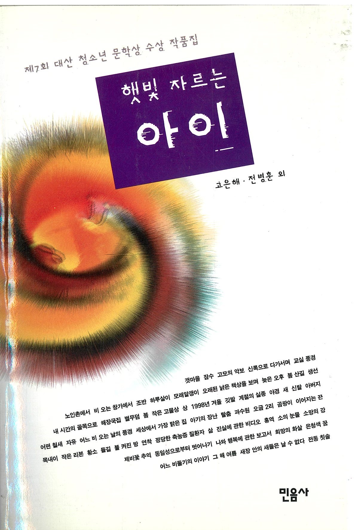 대산 청소년 문학상의 일곱 번째 작품집 『햇빛 자르는 아이』는 청소년들이 자신들의 시선으로 세상을 바라보고 자신들의 손으로 차곡차곡 짓고 색칠한 집들이 모인 마을이라고 할 수 있습니다. 이 마을에서 이제 막 세상을 향해 얼굴을 내민 새싹처럼 푸르고 싱그러운 말들과 때 묻지 않은 체험을 접하는 것은 정말 즐거운 일이 아닐 수 없습니다. 그들과 함께 “갯마을”을 거닐고 “비 오는 창가에서” 더불어 사념에 잠기며 또한 교실에서 “낡은 책상”을 벗 삼아 “희망의 화살”을 쏘는 일은 어른들도 기꺼이 동참할 만한 일이며 동시대의 청소년들에게는 서로의 꿈을 함께 나눌 수 있는 열린 무대가 될 것입니다.